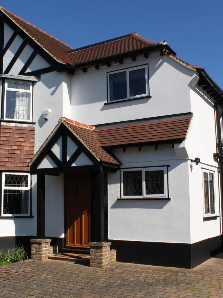 We are pleased to present this new front extension to the roof of a semi-detached house in Petts Wood, our clients required a new porch which contains a new timber post and brick pier. This new exterior was designed to match the existing gable end on the front, along with the existing roof tiles.